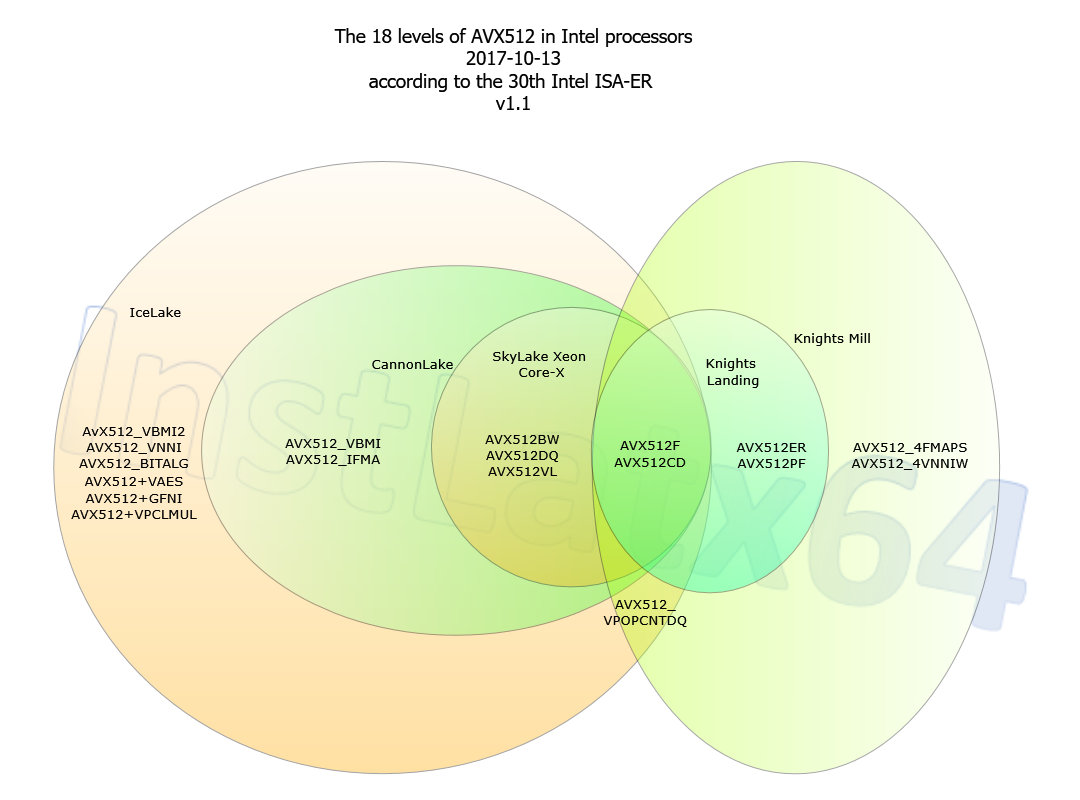 [16:44:46 CEST] <J_Darnley> Gramner (or anyone else) do you have a good reference for which processors have which AVX-512 variations?